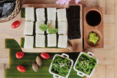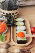 Zdjęcie "Roll sushi z wodorostów sałatka i krewetki jaj" może być wykorzystywane do celów osobistych i komercyjnych zgodnie z warunkami zakupionej licencji Royalty-free. Obraz jest dostępny do pobrania w jakości wysokiej rozdzielczości do 5760x3840.