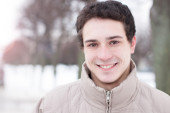 Kurtka na zewnątrz zima, pomysł koncepcji szczęśliwy osoba pewność, moda styl życia szczegół facet street, spaceru weekend