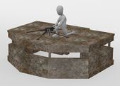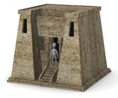 3D renderowania postać z kreskówek z drzwi do piwnicy