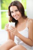 Zdjęcie "kobieta picia kawy lub herbaty, w domu" może być wykorzystywane do celów osobistych i komercyjnych zgodnie z warunkami zakupionej licencji Royalty-free. Obraz jest dostępny do pobrania w jakości wysokiej rozdzielczości do 5760x3840.