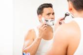 Zdjęcie " człowiek za pomocą niektórych krem przeciw starzeniu się" może być wykorzystywane do celów osobistych i komercyjnych zgodnie z warunkami zakupionej licencji Royalty-free. Obraz jest dostępny do pobrania w jakości wysokiej rozdzielczości do 5760x3840.