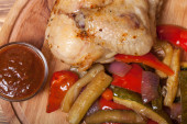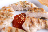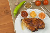Stek z kurczaka z warzywami. Grillowane piersi z kurczaka. Diety mięsa z grilla. Kurczak smażony stek.