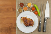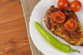 Stek z kurczaka z warzywami. Grillowane piersi z kurczaka. Diety mięsa z grilla. Kurczak smażony stek.
