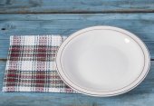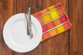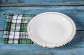 Zdjęcie "Czysta płyta z serwetką na drewnianym tle." może być wykorzystywane do celów osobistych i komercyjnych zgodnie z warunkami zakupionej licencji Royalty-free. Obraz jest dostępny do pobrania w jakości wysokiej rozdzielczości do 5760x3840.