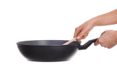 Zdjęcie "Ręka z non stick patelnia na białym tle" może być wykorzystywane do celów osobistych i komercyjnych zgodnie z warunkami zakupionej licencji Royalty-free. Obraz jest dostępny do pobrania w jakości wysokiej rozdzielczości do 5760x3840.