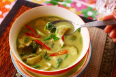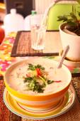 Tajska zupa zielone curry z mlekiem kokosowym morze żywności