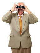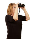 portret kobiety starszy patrząc przez lornetki na czarno