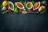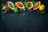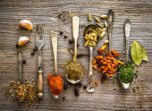 kolorowe przyprawy na drewnianym stole