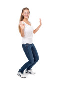 efektowne młoda kobieta koszula i jeansy na białym tle