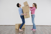Zdjęcie "Młoda para wprowadza się do nowego domu" może być wykorzystywane do celów osobistych i komercyjnych zgodnie z warunkami zakupionej licencji Royalty-free. Obraz jest dostępny do pobrania w jakości wysokiej rozdzielczości do 5760x3840.