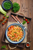 Zdjęcie "Sałatka z grillowanych warzyw z żółta i czerwona papryka, eggpla" może być wykorzystywane do celów osobistych i komercyjnych zgodnie z warunkami zakupionej licencji Royalty-free. Obraz jest dostępny do pobrania w jakości wysokiej rozdzielczości do 5760x3840.