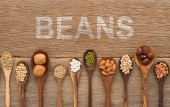 Asortyment fasola i soczewica w konopi worek na drewniane deseń