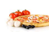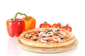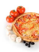 aromatyczna pizza z warzywami i grzybami na białym tle