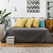 Zdjęcie "Sypialnia z podwójnym łóżkiem" może być wykorzystywane do celów osobistych i komercyjnych zgodnie z warunkami zakupionej licencji Royalty-free. Obraz jest dostępny do pobrania w jakości wysokiej rozdzielczości do 5760x3840.