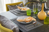 stół i wygodne krzesła w nowoczesnym domu z tabeli elegancki