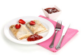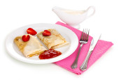 stos smaczne naleśniki na białym tle