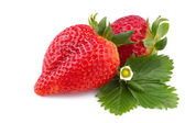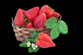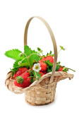 Kosz truskawka zbliżenie. Świeże truskawki na białym tle.