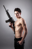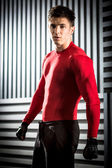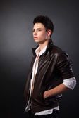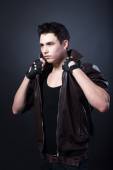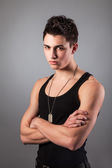 zły przystojny młodzieniec pokazuje środkowy palec