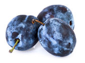 Śliwki organicznych owoców z liść na białym tle. Zbliżenie.