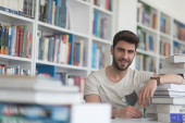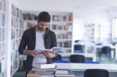 Zdjęcie "portret student podczas czytania książki w szkolnej bibliotece" może być wykorzystywane do celów osobistych i komercyjnych zgodnie z warunkami zakupionej licencji Royalty-free. Obraz jest dostępny do pobrania w jakości wysokiej rozdzielczości do 5760x3840.