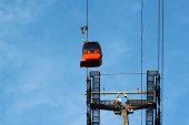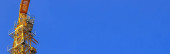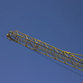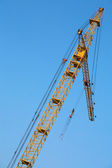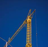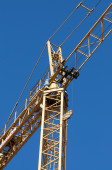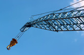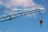 Fragment budynku żurawia na tle niebieskiego nieba