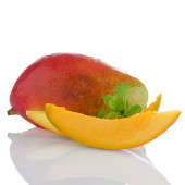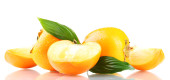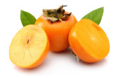 apetyczny persimmons kropelki i liść na białym tle