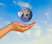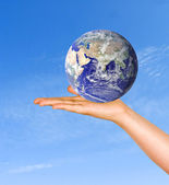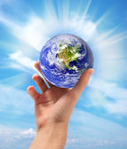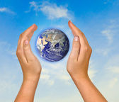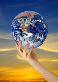 planeta ziemia w hands.elements to zdjęcie dostarczone przez nasa