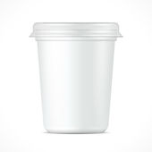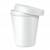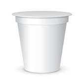White Cup Tub Food Plastic Container na deser, jogurt, lody, kwaśny Sream lub przekąski. Ilustracja Izolowana na białym tle. Szablon makiety gotowy do projektu. Wektor EPS10