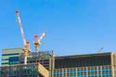Żuraw i budynek placu budowy (filtrowane obrazu przetwarzane