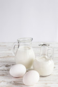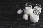 Zdjęcie "Słoiki mleka i jaj na podłoże drewniane" może być wykorzystywane do celów osobistych i komercyjnych zgodnie z warunkami zakupionej licencji Royalty-free. Obraz jest dostępny do pobrania w jakości wysokiej rozdzielczości do 5760x3840.