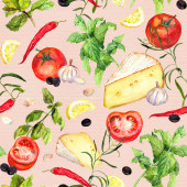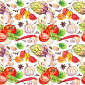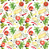 Gotowania wzór, tło bezszwowe żywności. Akwarela