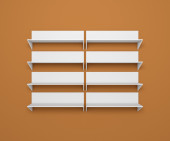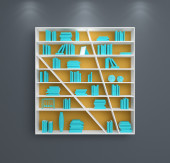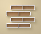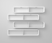 Realistyczne 3d renderowane nowoczesne półki puste książek i dekoracje.