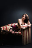 Seksowny kobiety z długimi czarnymi włosami i sexy fryzurę.