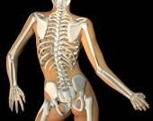 3D render powrót kobieta ciało i szkielet wyświetlone zbliżenie