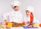 Zdjęcie "dwóch mało gotuje, porcjowanie gotowane pizza" może być wykorzystywane do celów osobistych i komercyjnych zgodnie z warunkami zakupionej licencji Royalty-free. Obraz jest dostępny do pobrania w jakości wysokiej rozdzielczości do 5760x3840.