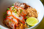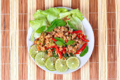 Sałatka z kurczaka larb. tradycyjne tajskie jedzenie, z wapna palonego kurczaka, chili i zioła. ten pokarm jest popularne w północno wschodniej części kraju (isaan)