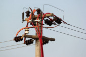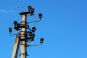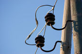 Starego betonu biegun energii elektrycznej izolatorów i kabel