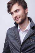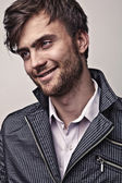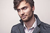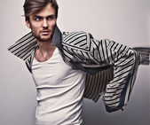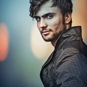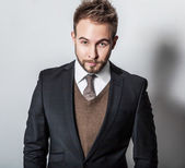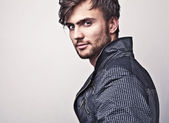 Elegancki młody, przystojny mężczyzna. Studio portret mody.