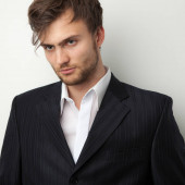 Zdjęcie "Elegancki młody, przystojny mężczyzna. Studio portret mody." może być wykorzystywane do celów osobistych i komercyjnych zgodnie z warunkami zakupionej licencji Royalty-free. Obraz jest dostępny do pobrania w jakości wysokiej rozdzielczości do 5760x3840.