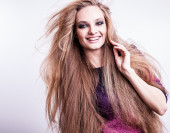 piękna młoda kobieta brunetka z jasnymi moda wielobarwny makijaż. Studio fotografii.