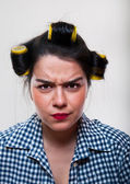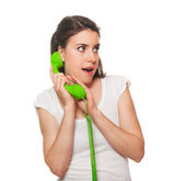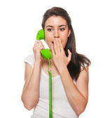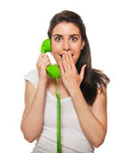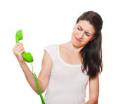 młoda kobieta dostawanie zaakcentowany przez kogoś na telefon.