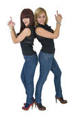 dwa figlarny piękno młode kobiety w dżinsach.