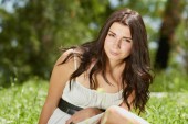 młoda dziewczyna chłodzenie w parku na świeżym powietrzu