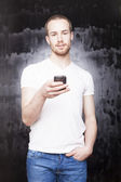 Zdjęcie "Man with cell phone" może być wykorzystywane do celów osobistych i komercyjnych zgodnie z warunkami zakupionej licencji Royalty-free. Obraz jest dostępny do pobrania w jakości wysokiej rozdzielczości do 5760x3840.