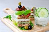 Bułeczki z ser, pomidory i szczypiorek na świeże zdrowe