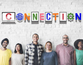 różnorodność znajomi w pobliżu ściany z połączenia