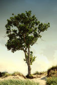 jedno drzewo Pustynia Skały krajobraz pojęciowy tła 3d ilustracji w lewo