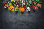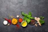 Zioła i przyprawy na czarnym tle kamień