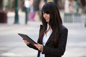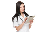 Zdjęcie "młoda kobieta za pomocą cyfrowego tabletu" może być wykorzystywane do celów osobistych i komercyjnych zgodnie z warunkami zakupionej licencji Royalty-free. Obraz jest dostępny do pobrania w jakości wysokiej rozdzielczości do 5760x3840.