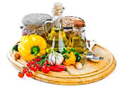 Kolorowy makaron Fussilli i gotowania składników na biały Backgrou